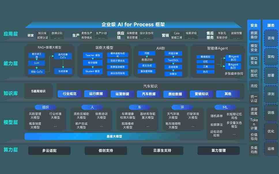 端到端的一站式AI工作空间深度融合了从企业战略规划到日常经营的全流程业务板块,,定向解决车企内部领域多、、、部门多、、链条长、、、场景碎片化等难题,,支持车企快速构建以AI为核心的生产力写作体系,,,,实现任务执行与AI能力的无缝集成与交互