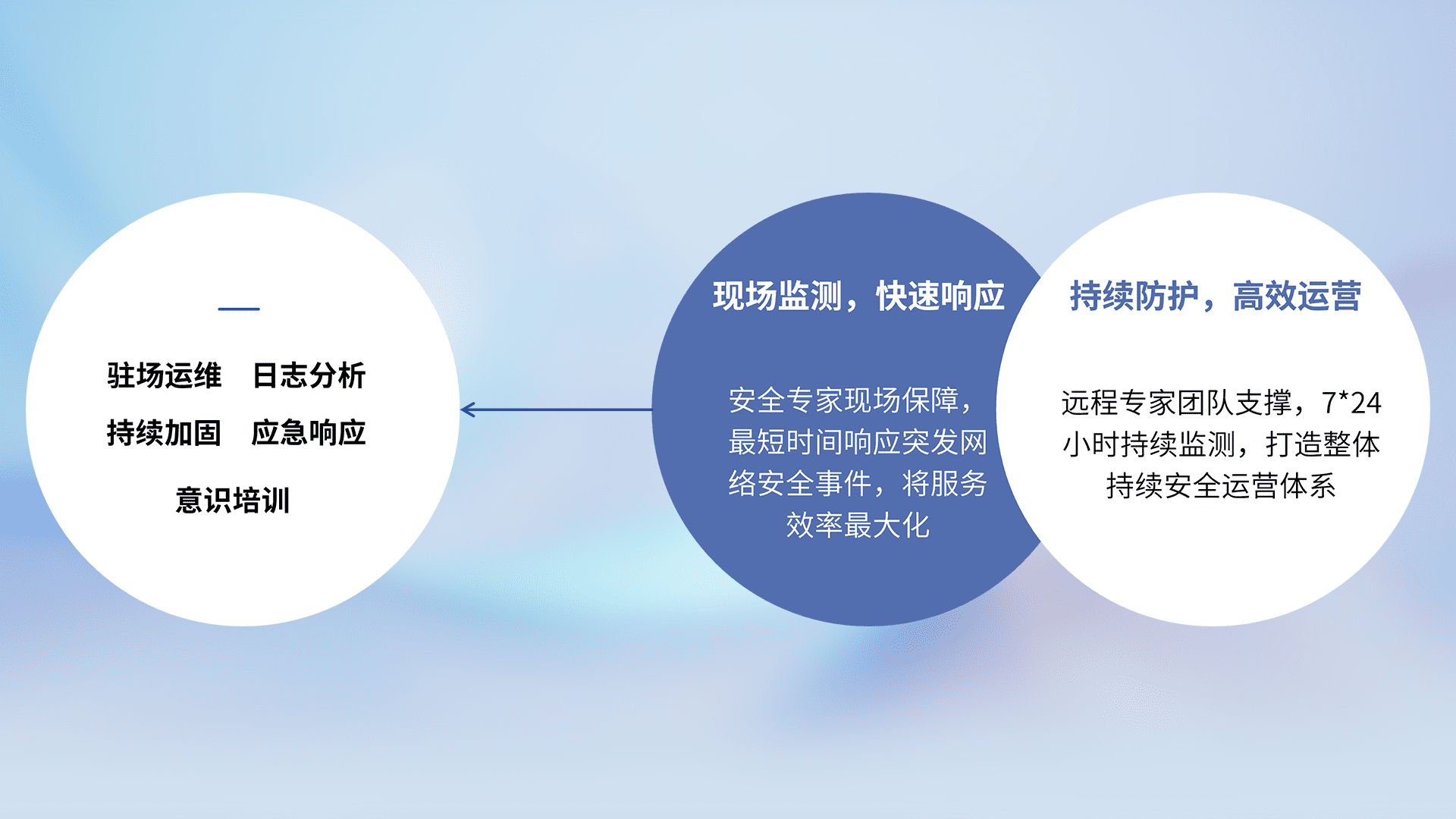 针对客户行业特性,,,提供专属的一站式安全管理服务,,帮助客户全面感知网络空间威胁,,,通过安全专家的线上、、、线下防护支持,,,,实现风险闭环,,将安全保障常态化,,为客户打造常态化安全运维运营服务。。